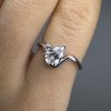 Centrální kámen v brusu pear (kapka) plynule přechází v kompozici s dvěma menšími diamanty, které celou linii šperku vyvažují a zároveň zvýrazňují. Prsten elegantně obepíná prst, aniž by působil mohutně – a přesto na sebe strhává pozornost.