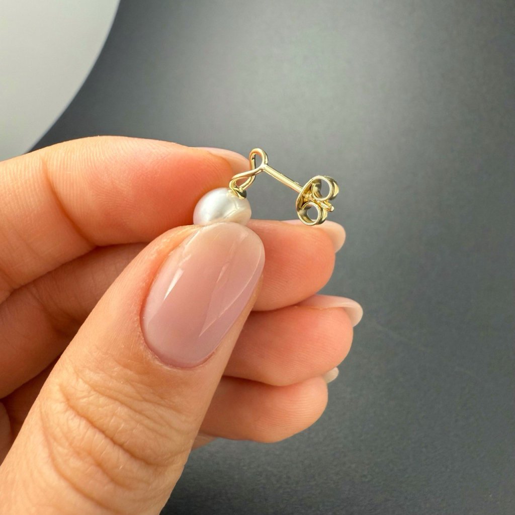 Jemné peckové náušnice ze žlutého zlata s říční perlou