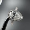 Elegantní prsten s centrálním laboratorním diamantem ve tvaru kapky, orámovaný třpytivým halo drobných kamenů. Ideální volba pro výjimečný okamžik.