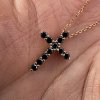Elegantní křížek ze 14k žlutého zlata osazený přírodními černými diamanty – odvážný a stylový šperk s hlubokým významem.