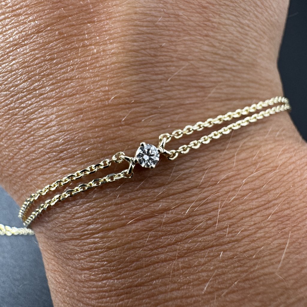 Minimalistický náramek ze žlutého zlata s laboratorně vytvořeným diamantem o průměru 2,5 mm. K dispozici ihned.