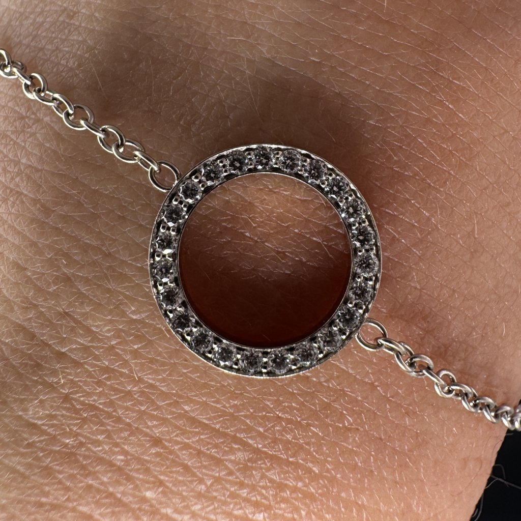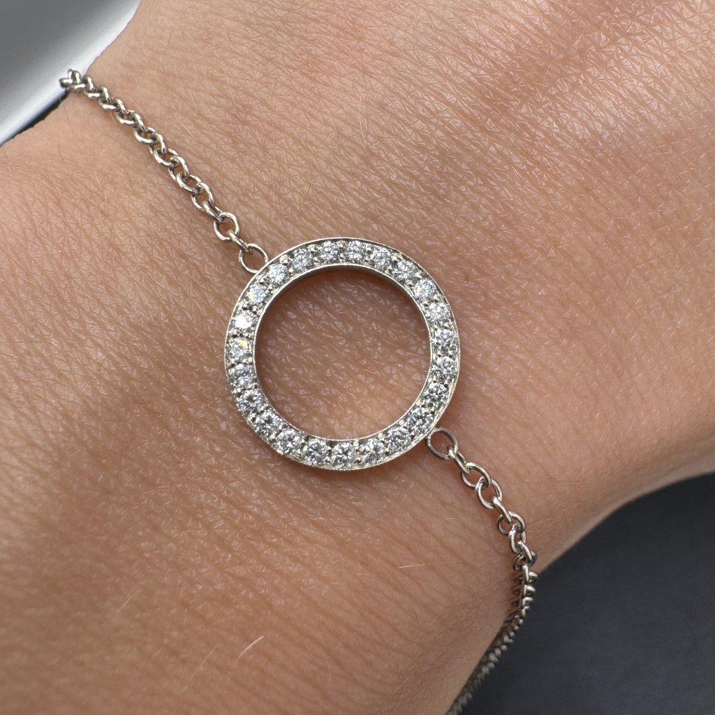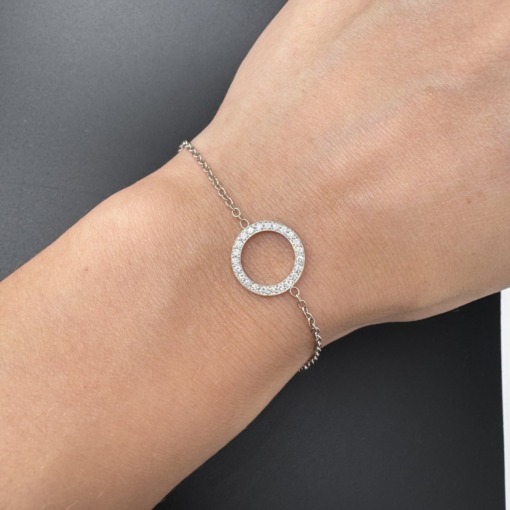 Náramek z bílého zlata s diamantovým kruhem — symbol elegance, harmonie a nadčasové hodnoty