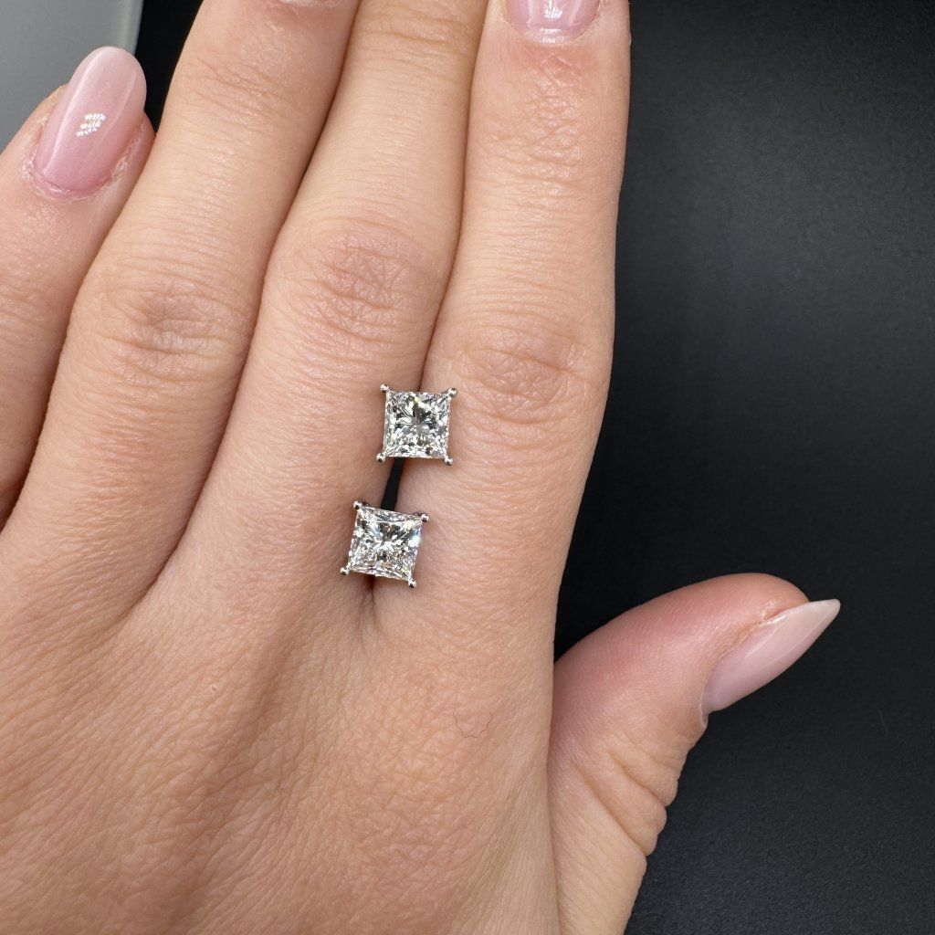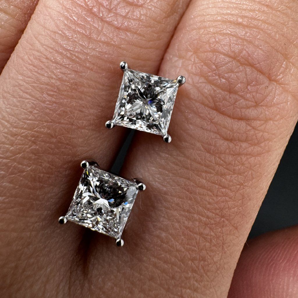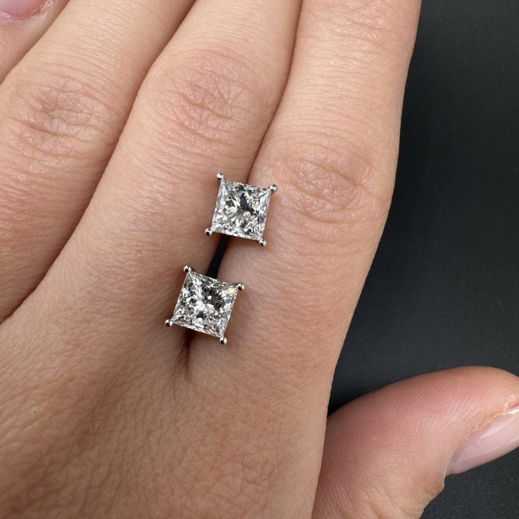 Platinové náušnice s laboratorními diamanty 1 karát, brus Princess