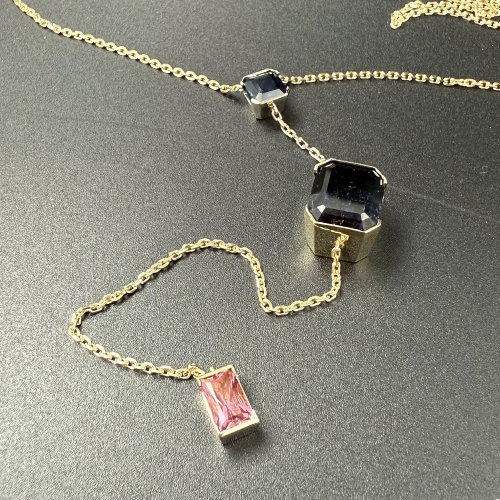 Přívěsek s tříbarevným turmalínem, safírem a růžovým turmalínem