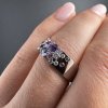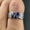 Tento prsten z bílého zlata 14k (585) o hmotnosti 5,3 g představuje harmonické spojení luxusu, elegance a symboliky. Barevné safíry – růžové, modré a fialové – se zde snoubí s laboratorními diamanty, jejichž brilance dokonale podtrhuje krásu drahokamů. Každý detail je precizně zpracován tak, aby šperk působil sofistikovaně a zároveň nadčasově.