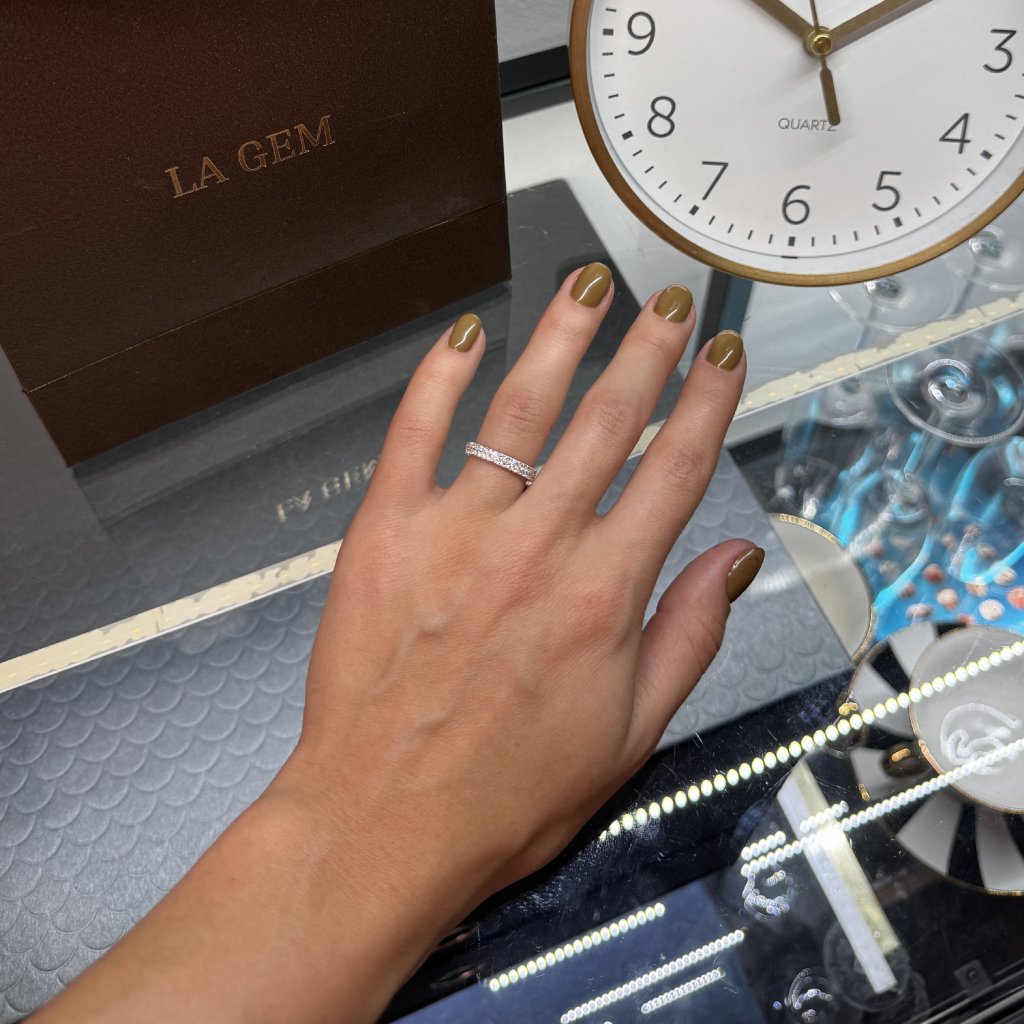 Laboratorní diamanty vynikají stejnou optickou krásou, tvrdostí a brilancí jako přírodní diamanty. Jsou symbolem čistoty, preciznosti a moderního přístupu k luxusu. Jejich dokonale sladěné osazení v dvou řadách dodává prstenu sofistikovaný vzhled a podtrhuje jeho současný charakter, aniž by ztrácel nadčasovou eleganci.