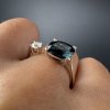 Elegantní otevřený prsten s temně modrozelenou spinelí a přírodním diamantem — pro ženy, které milují kontrasty, sílu a vzácnost.