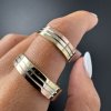 Tato sada prstenů je vyrobena z bílého, žlutého a růžového zlata. Nejenže vypadají výjimečně, ale zároveň nesou hluboký symbolický význam – spojení tří elementů v jednom celku. Každý odstín reprezentuje jiný rozměr vztahu: charakter, teplo a čistotu.