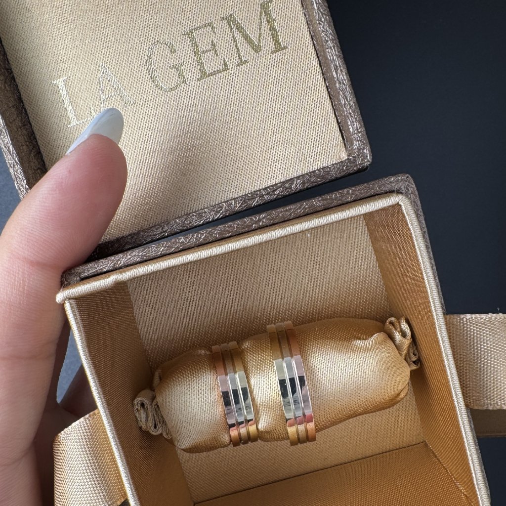 Tato sada prstenů je vyrobena z bílého, žlutého a růžového zlata. Nejenže vypadají výjimečně, ale zároveň nesou hluboký symbolický význam – spojení tří elementů v jednom celku. Každý odstín reprezentuje jiný rozměr vztahu: charakter, teplo a čistotu.