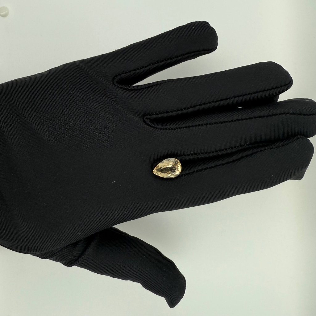 Heliodor, známý také jako zlatý beryl, je jedním z nejvzácnějších členů berylové rodiny, do které patří i smaragd, akvamarín či morganit. Tento kámen o hmotnosti 3,27 ct pochází z Brazílie a zaujme svou teple zlatavou barvou s jemnými medovými odlesky. Vybraná brus kapky (Pear, 12 × 8,5 mm) zvýrazňuje jeho brilantní lesk a dokonalou čistotu Flawless–VVS, díky níž se světlo v kameni doslova tančí. Tvrdost 8 na Mohsově stupnici zaručuje, že je nejen nádherný, ale i vhodný pro každodenní nošení.
