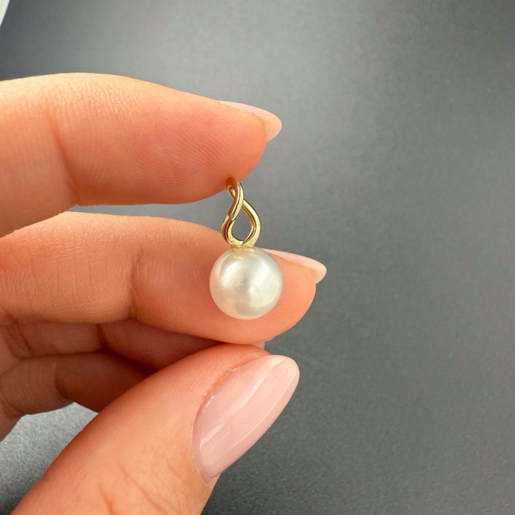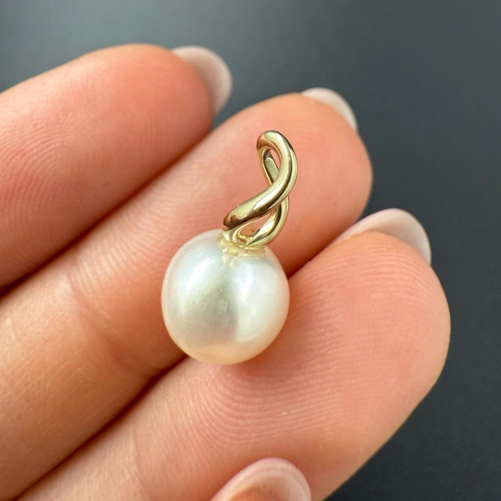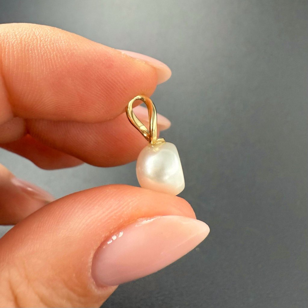 Tento zlatý přívěsek ze 14k zlata s říční perlou o velikosti 8–9 mm představuje šperk, který v sobě spojuje přírodní krásu, jemnou originalitu a nadčasovou eleganci. Perla zaujme svým přirozeným hedvábným leskem a netradičním tvarem se jemně seříznutou stranou, která jí dodává moderní charakter a činí z každého kusu jedinečný originál. Minimalistické zlaté uchycení nechává vyniknout samotnou perlu a podtrhuje její autentickou krásu.