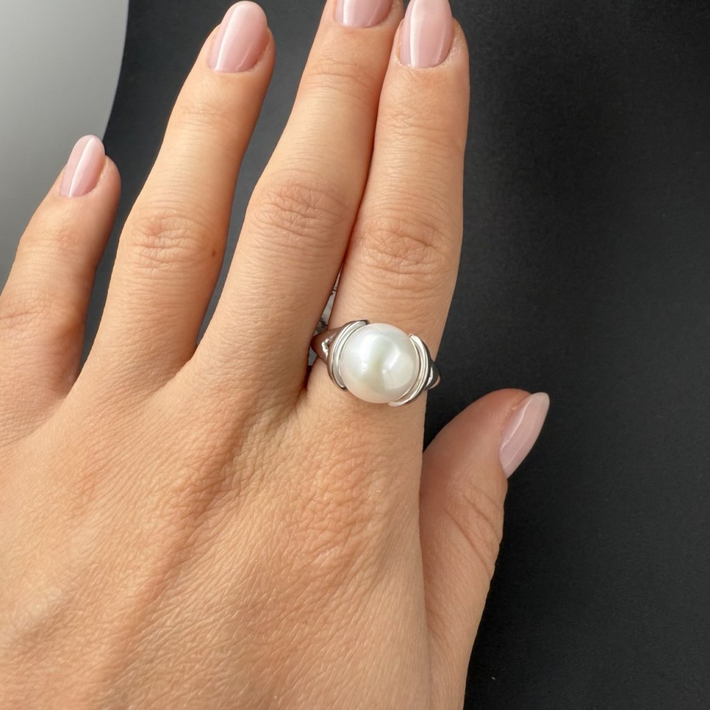 Říční perla na tomto prstenu je skutečným přírodním originálem — žádné dvě nejsou stejné. Její jemná nepravidelnost a přirozený lesk zdůrazňují autenticitu a osobitost šperku. Bílý odstín zlata dokonale ladí s perleťovým povrchem perly a vytváří čistý, moderní kontrast, který působí elegantně a nadčasově.